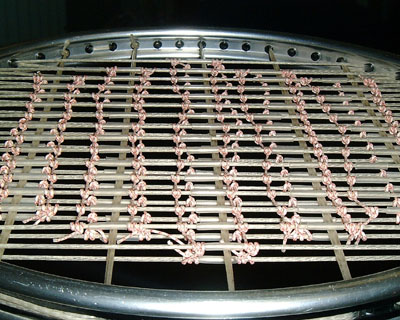 Dr Simon Goodwill and Professor Steve Haake of the Sports Engineering Research Group wrote a scientific paper on spaghetti strings concluding that spaghetti strings impart approximately twice as much spin on the ball in comparison to conventional strings. The intricate combination of rollers and interlocking ‘spaghetti’ threads allow the strings to deform laterally during impact, storing energy. This stored energy is returned to the ball as topspin, the additional downward force of a ball with topspin causes it to have a lower trajectory and land sooner on the court. Therefore, a player with a spaghetti racket was able to apply a wider range of topspin to the ball, making their shots less predictable to the receiving player. In addition to this finding, the results also showed that spaghetti strings will cause the ball to leave the player’s racket slower and at a higher angle relative to the horizontal.