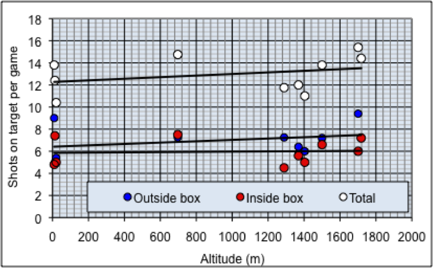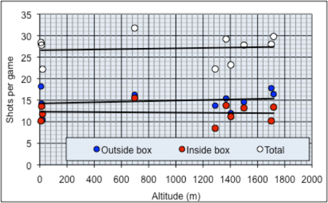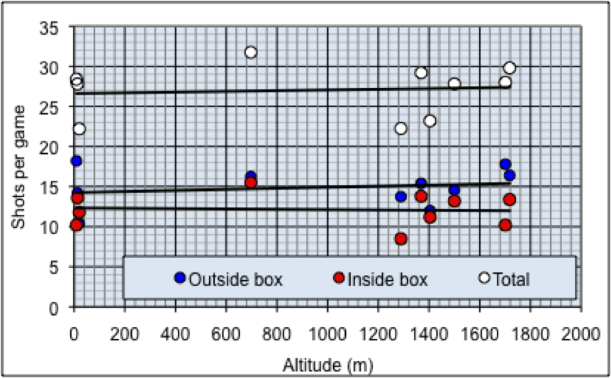 The results showed that the number of shots from outside the box increased with altitude at the expense of those from inside the box. The question is, has the same happened at the World Cup?