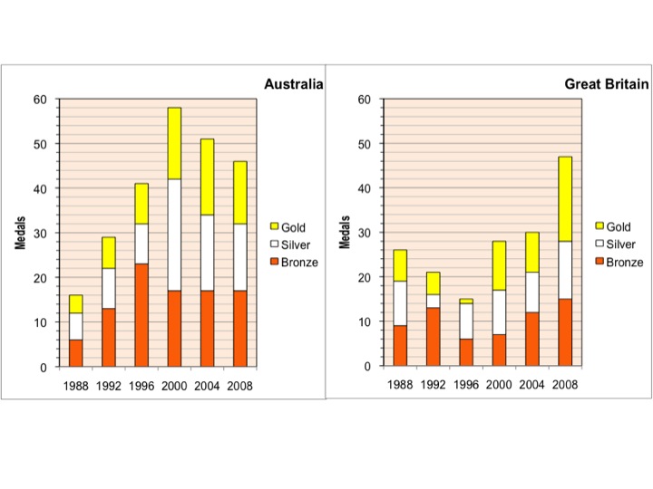 Figure 1. Medals won by Australia and GB between 1988 and 2008.