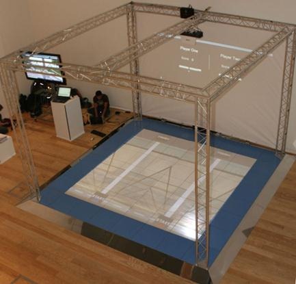 As its name suggests the smart floor is just that- an intelligent floor. Through the ‘intelligent tiles’ the floor is able to determine where you are stood on the floors surface and the way you are stood. The smart floor consists of a number of ‘intelligent tiles’, mounted on a supporting framework, a projector, projection screen and a controlling computer.