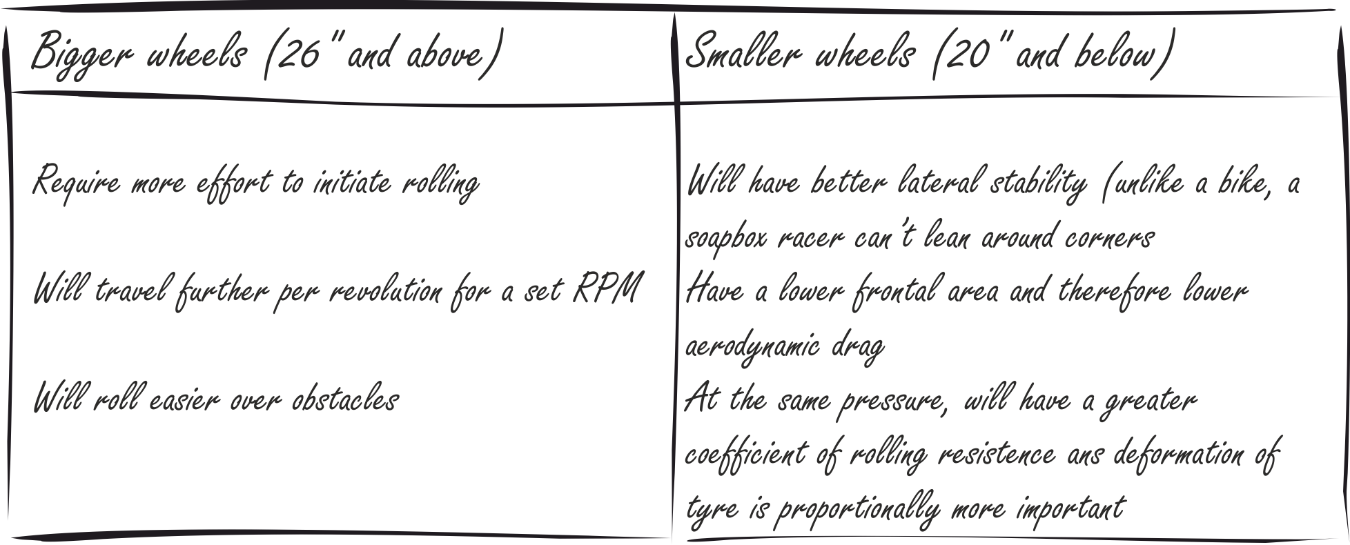 Weight: As you can see from the equation, rolling resistance increases with the mass of the racer (m = mass of Guy + mass of racer). However, as the Newtonian model showed, the force due to gravity is our only means of propulsion and has a much greater effect than the loss due to rolling resistance. For our gravity racer it was therefore going to be helpful if we could increase the weight and to try and reduce the rolling resistance in other ways.