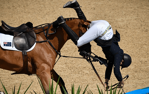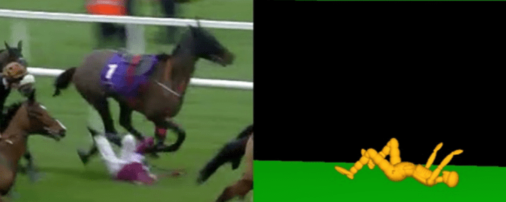 Example capture of a fall from horseback in racing activity, recreated with a computational model [3].